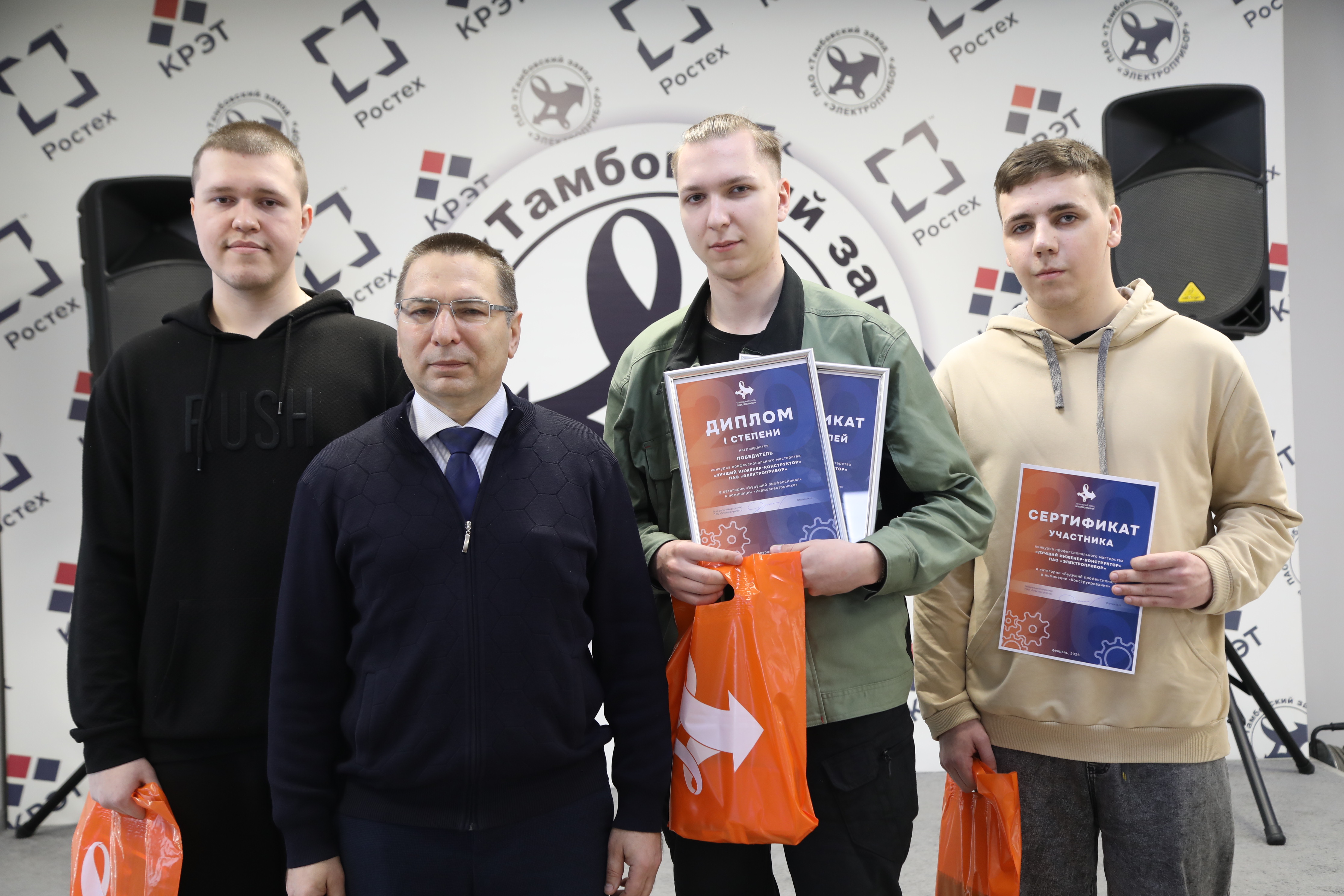 Студенты Державинского университета Дмитрий Гусев, Станислав Донцов и Петр Семенов участвовали в конкурсе профессионального мастерства «Лучший инженер-конструктор» от ПАО «Электроприбор». Его целью было привлечение талантливой молодежи в конструкторские бюро Электроприбора.