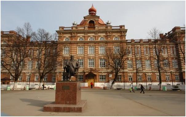 В Елабуге в 1989г. был построен центр педагогического образования Вятской Губернии. На строительство института пожертвовала деньги купчиха, почетная гражданка Елабуги - Глафира Федоровна Стахеева, в память о покойном муже. Она вначале хотела построить духовную семинарию, но ее просьба получила отказ от Священного Синода. Ей разрешили построить Епархиальное женское училище. Строительство здания было закончено летом 1903 г. по проекту инженера И.А.Чарушина и архитектора-художника А.И.Горохова. В училище были открыты дополнительные классы, которые давали возможность выпускницам работать учителями.