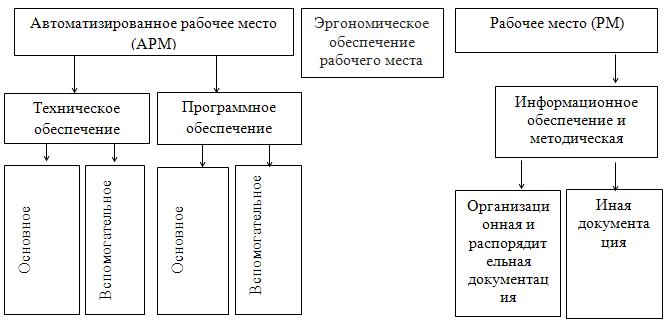 Согласно трудовому кодексу Российской Федерации от 30.12.2001 № 197-ФЗ рабочим местом является место, где работник должен находиться или куда ему необходимо прибыть в связи с его работой и которое прямо или косвенно находится под контролем работодателя. На наш взгляд автоматизированным рабочим местом (далее АРМ) является рабочее место, где применены технические и программные средства. Исследователи АРМ рассматривают в двух направлениях, первое как комплекс средств вычислительной техники и программного обеспечения, располагающийся непосредственно на рабочем месте сотрудника и предназначенный для автоматизации его работы в рамках специальности, второе направление это автоматизация наиболее типичных функций, выполняемых сотрудником на данном рабочем месте.
