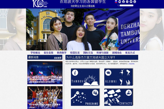 Сайт ТГУ имени Г.Р. Державина на китайском языке доступен по ссылке: cn.tsutmb.ru Благодаря новому интернет-ресурсу полная информация о Державинском университете станет доступна пользователям, владеющим китайским языком.