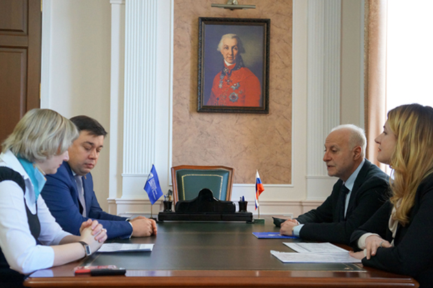 Ректор ТГУ имени Г.Р. Державина Владимир Стромов встретился с представителями ООН – главой Представительства Управления Верховного комиссара ООН в Российской Федерации Владимиром Цюрко и юристом организации Ириной Щербаковой. Почетные гости прибыли в Державинский университет, чтобы обсудить перспективы сотрудничества.