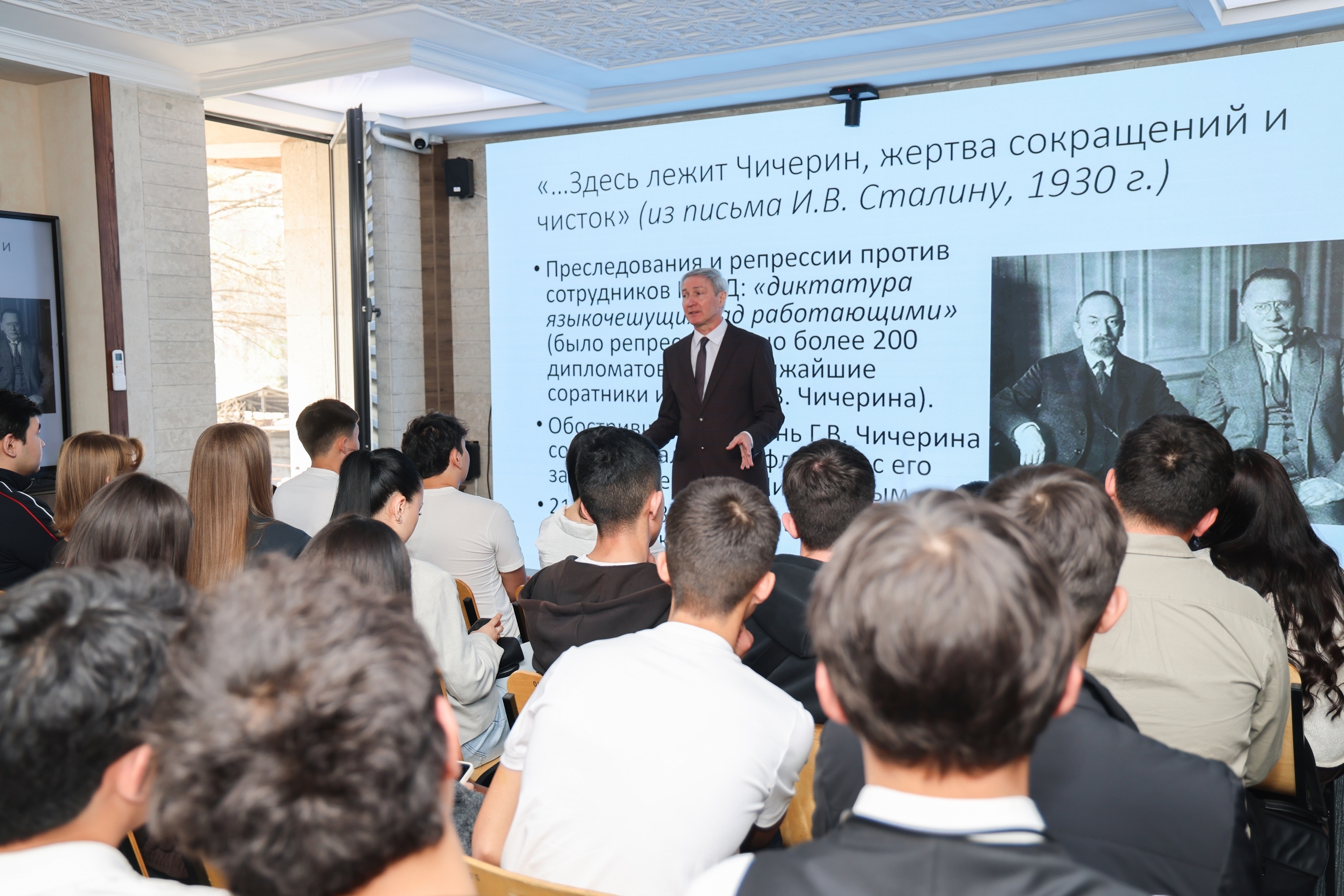 – Кыргызстан сейчас на подъёме, динамично растёт экономика. Это очень отражается на людях и университетах, которые открыты новому. Поэтому с большим оптимизмом смотрю на перспективы подписанных соглашений о сотрудничестве в образовании и науке, академическом обмене студентами и преподавателями. Державинский заключил их с ведущими университетами страны, – отметил ректор Державинского Павел Моисеев. – Еще одно впечатление от Кыргызстана – русский язык. Он везде или почти везде. На нем говорит молодежь, потому что наши страны и народы тесно связаны. Задача Державинского – вносить свой вклад в эти связи. Мы придерживаемся стратегии «университета публичной дипломатии», в том числе создавая возможности для сотрудничества Тамбовской области и Кыргызстана в сфере экономики. Огромные слова благодарности за встречи и радушный прием – посольству России в Кыргызстане и лично послу Сергею Ивановичу Вакунову, коллегам из кыргызстанских университетов, Русского Дома в Оше и Торгового представительства России. За лекции и мастер-классы, которые впечатлили студентов и коллег в Кыргызстане, моя отдельная благодарность всей большой делегации Державинского!