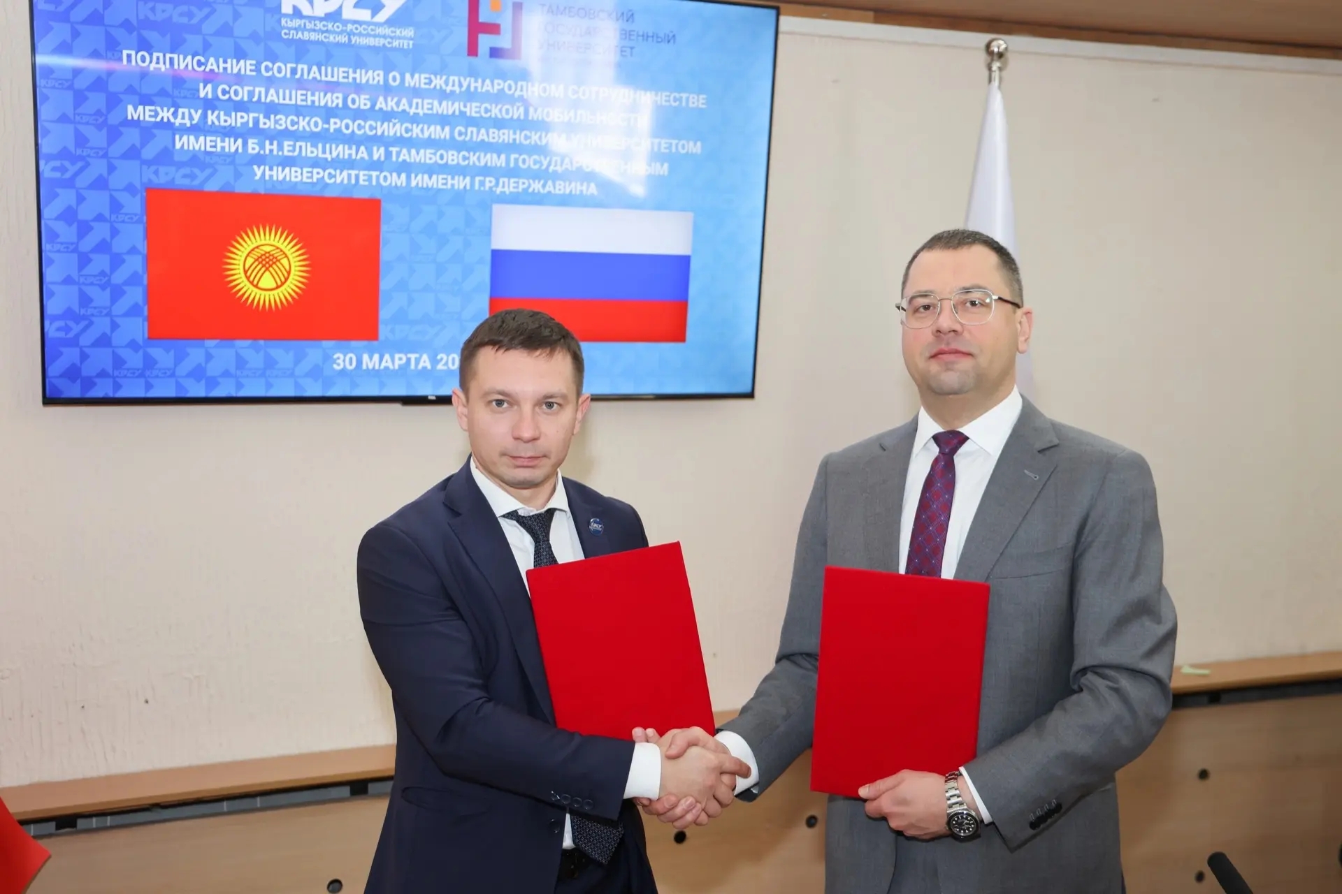 29 марта – 4 апреля состоялся официальный визит делегации Державинского университета во главе с ректором Павлом Моисеевым в Кыргызскую Республику. В состав делегации входили проректор по международной деятельности Елена Зуева и 8 ведущих учёных-преподавателей. Делегация посетила 6 вузов Кыргызской Республики в городах Бишкек, Ош и Кызыл-Кия.