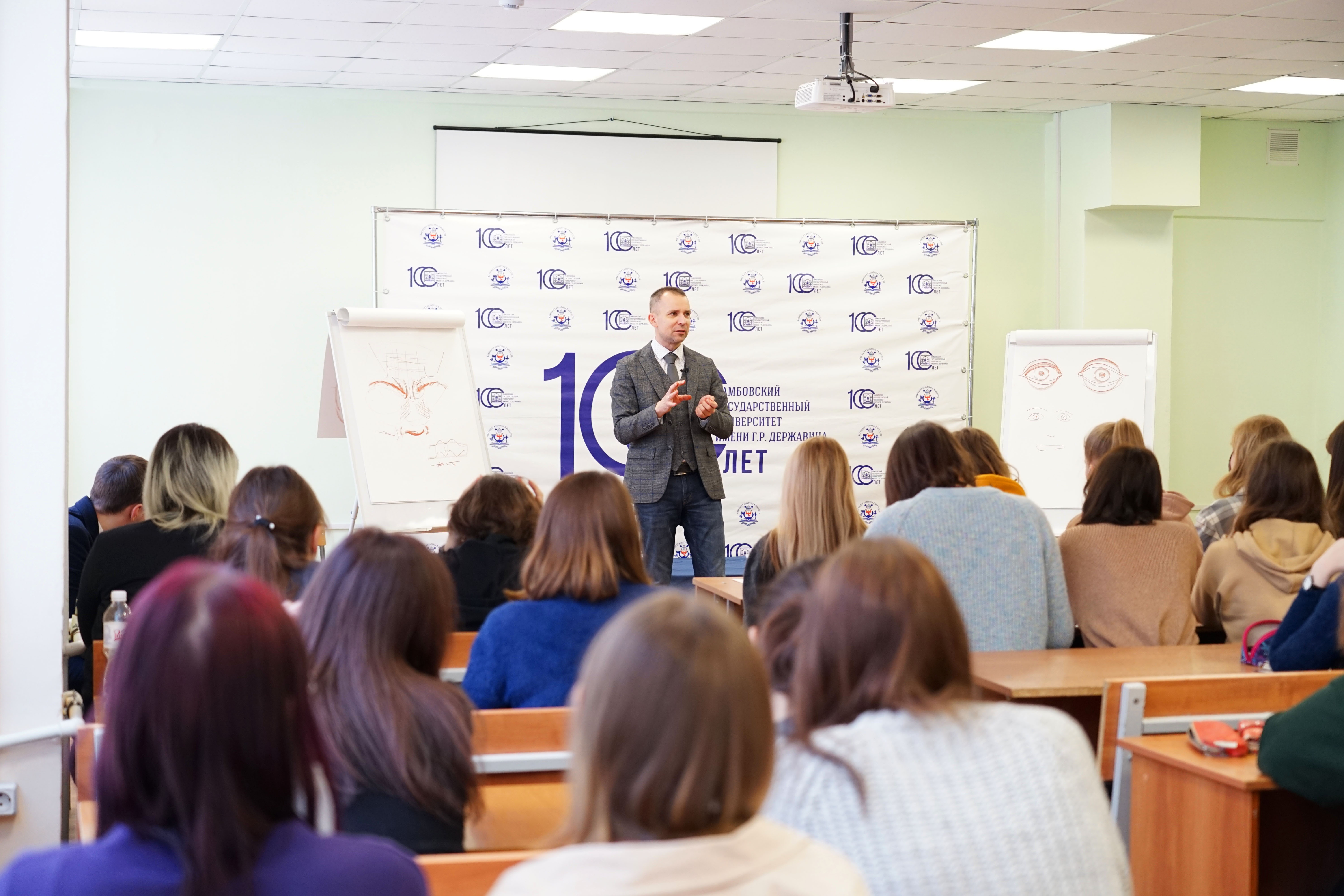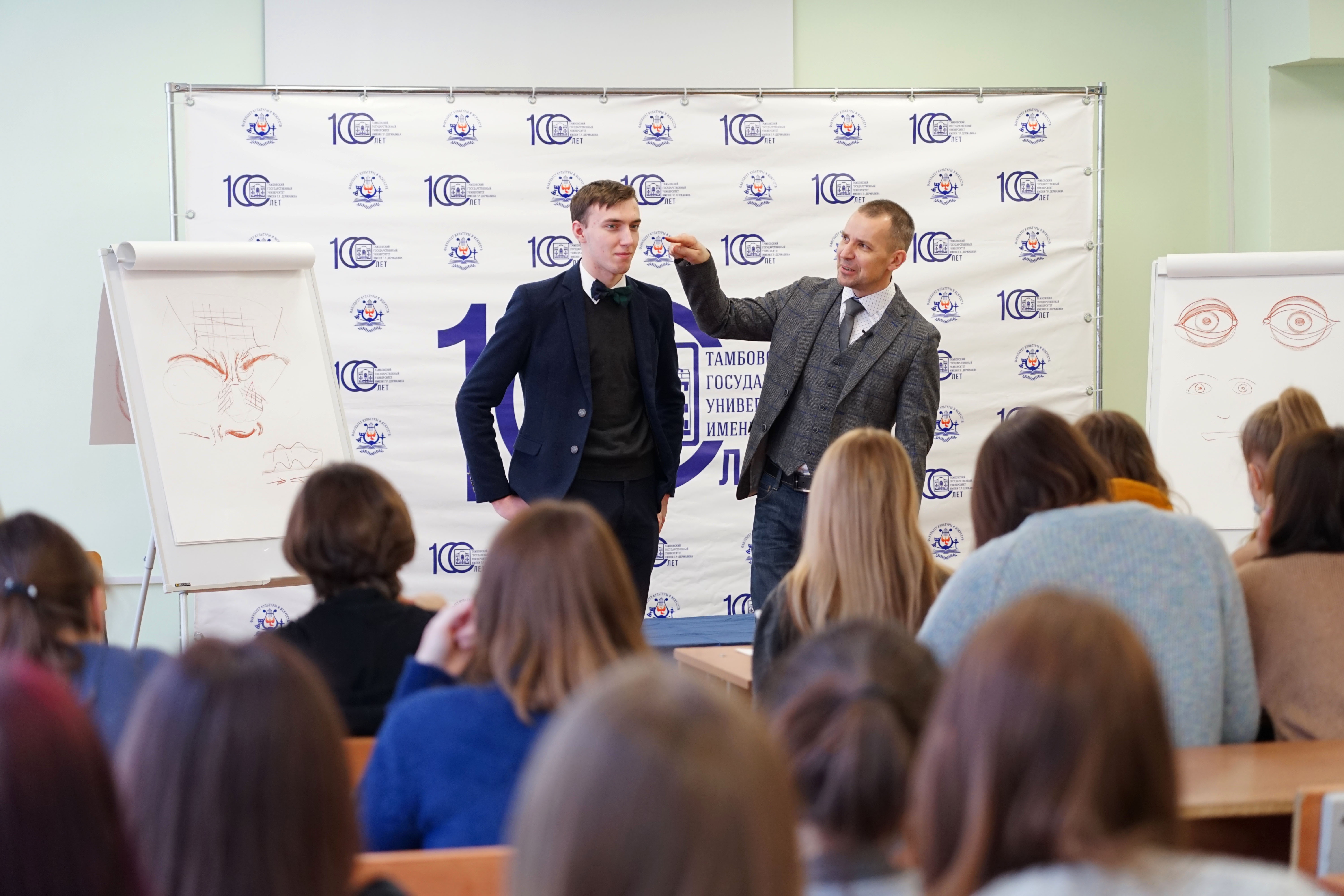 На занятиях державинцы рассмотрели анатомические особенности частей головы и фигуры человека, а также специфику создания с натуры портрета и фигур в динамических позах. Художник на студентах продемонстрировал, как меняется мимика человека в зависимости от его эмоций. Под руководством педагога участники мастер-класса отработали элементы рисунка.