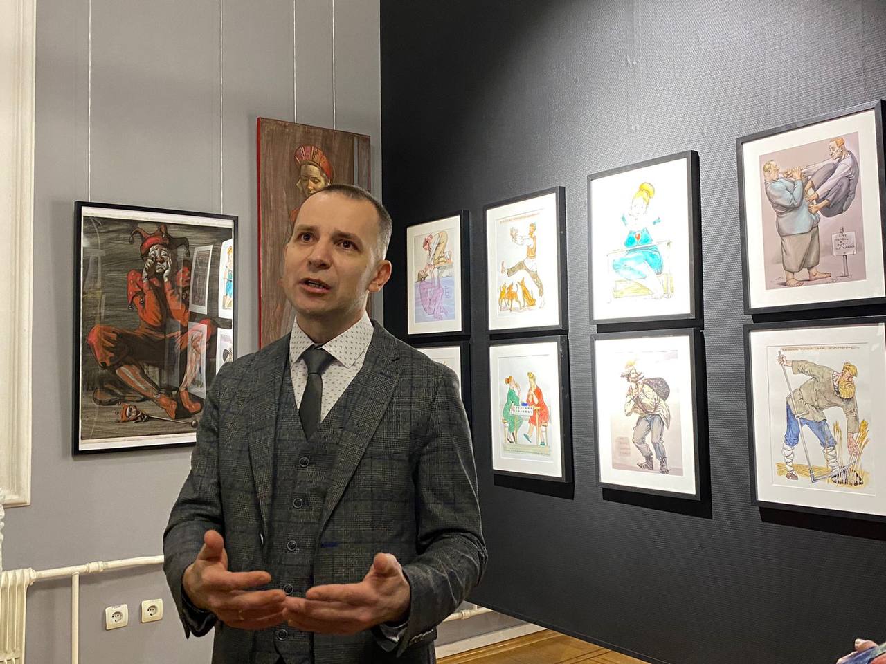 – В своих работах я часто использую прием иронии. Умение несерьезно относиться к себе очень важно. Зачастую основные проблемы у людей возникают из-за того, что они слишком серьезно к себе относятся. Народная мудрость учит нас, что все проблемы, которые есть внутри человека, проходящие. Именно поэтому в моих работах часто встречаются народные сюжеты. Это искренне и ближе всего человеку. Мне кажется, что русский художник должен говорить о событиях, которые происходят именно в России, – отмечает Александр Рыжкин. – Сегодня много инструментов для воплощения искусства. У меня есть карандаш, а есть стилус, и я могу выразить свои мысли и тем, и другим. Конечно, компьютер открывает больше возможностей для автора. Большинство работ, которые сегодня создает художник-график, все равно переходят в цифру.