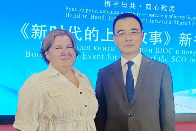 В Пекине Центром исследований дипломатической мысли Си Цзиньпина проведена презентация книги «История ШОС в новую эпоху». В событии приняли участие представители дипломатических корпусов и иных аналитических и общественных организаций стран-членов ШОС. С приветствиями обратились член партийного комитета, помощник министра иностранных дел, директор Отдела Европы и Азии Министерства иностранных дел КНР Лю Бинь, заместитель генерального секретаря ШОС Ахмад Саидмуродзода, генеральный секретарь Центра исследований дипломатической мысли Си Цзиньпина, президент Китайской Академии Международных Проблем, секретарь кабинета комплексных исследований Центра по изучению идей Си Цзиньпина о дипломатии Чэнь Бо. Книгу представил председатель правления издательства «Мировые знания» Цуй Чунь. В обсуждении выступила руководитель российского павильона Международного выставочного центра «Жемчужина ШОС» Светлана Ван. В книгу «История ШОС в новую эпоху» вошли истории о практическом сотрудничестве стран в рамках организации в сферах культуры, образования, здравоохранения, туризма, спорта, науки и техники, среди которых достойное место занимает история жизни и деятельности Светланы Ван.